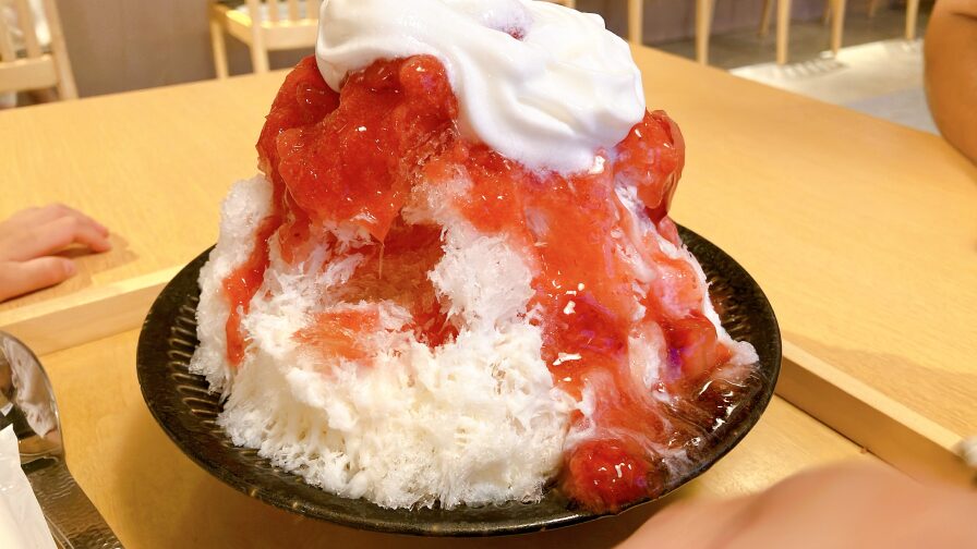大きな苺のかき氷をシェアしましたが、ふわふわで甘くて絶品でした!