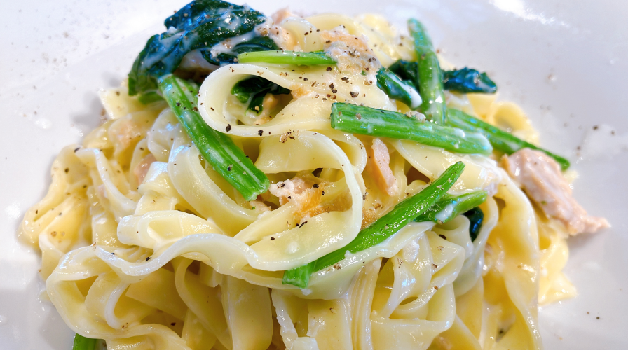生パスタはしっかり塩味が効いていて、味がぼやけていない。