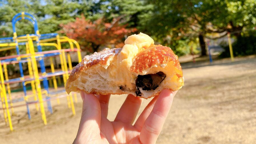 パンは近くの公園へ移動して、ベンチに座っていただきました。